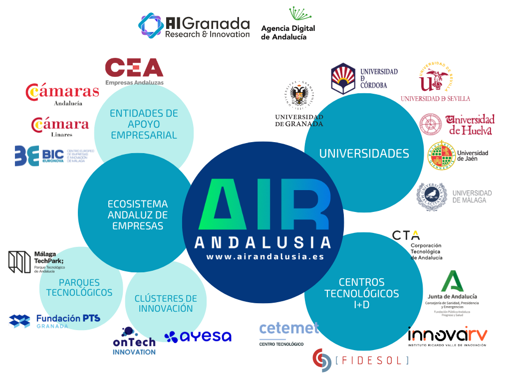 AIR-Andalusia is made up of a consortium of leading entities from the Andalusian innovation ecosystem, including universities, research centres, technology centres, business associations, chambers of commerce, technology parks, European Business and Innovation Centres (BICs/CEEIs), technology clusters and companies.